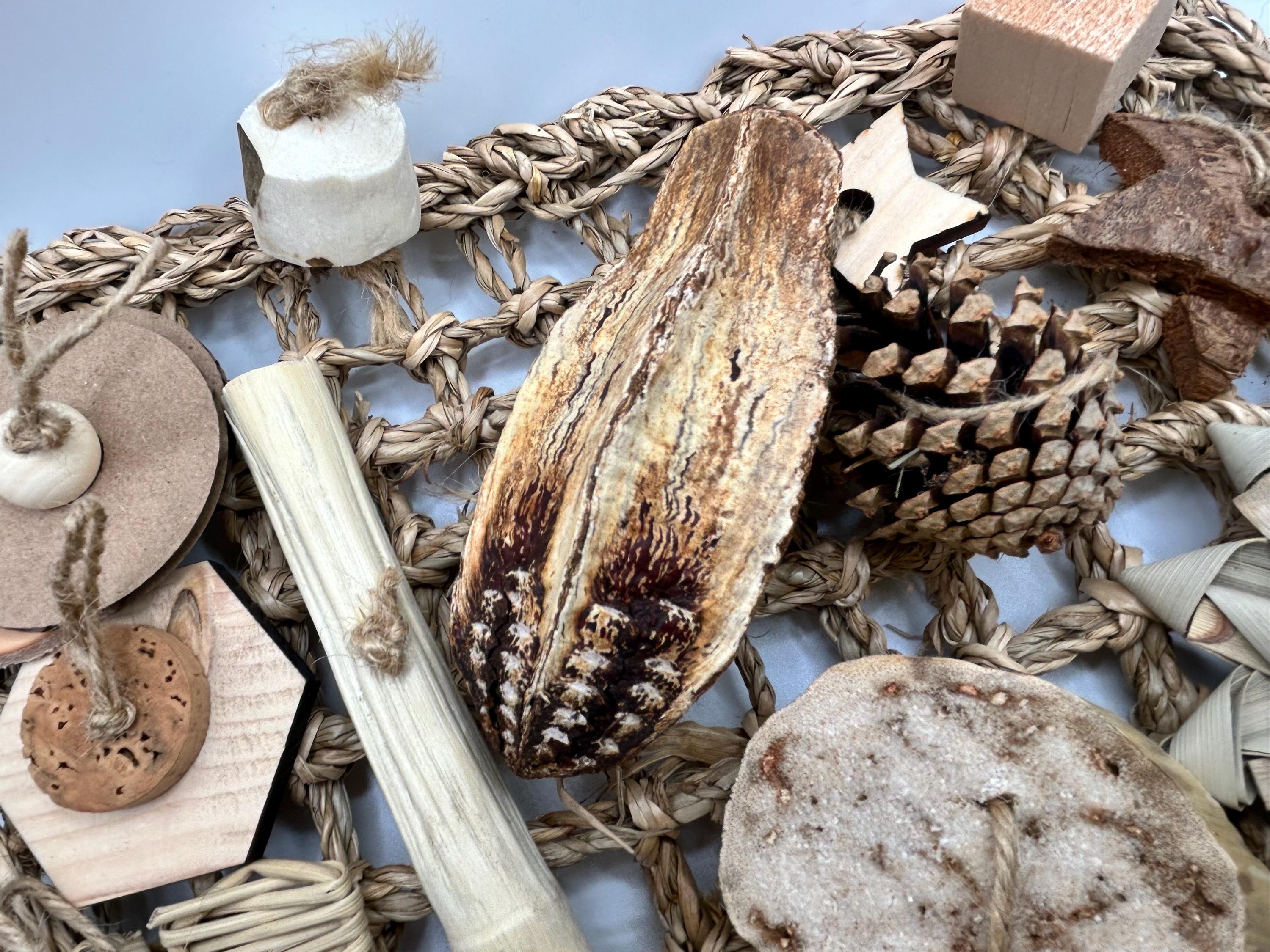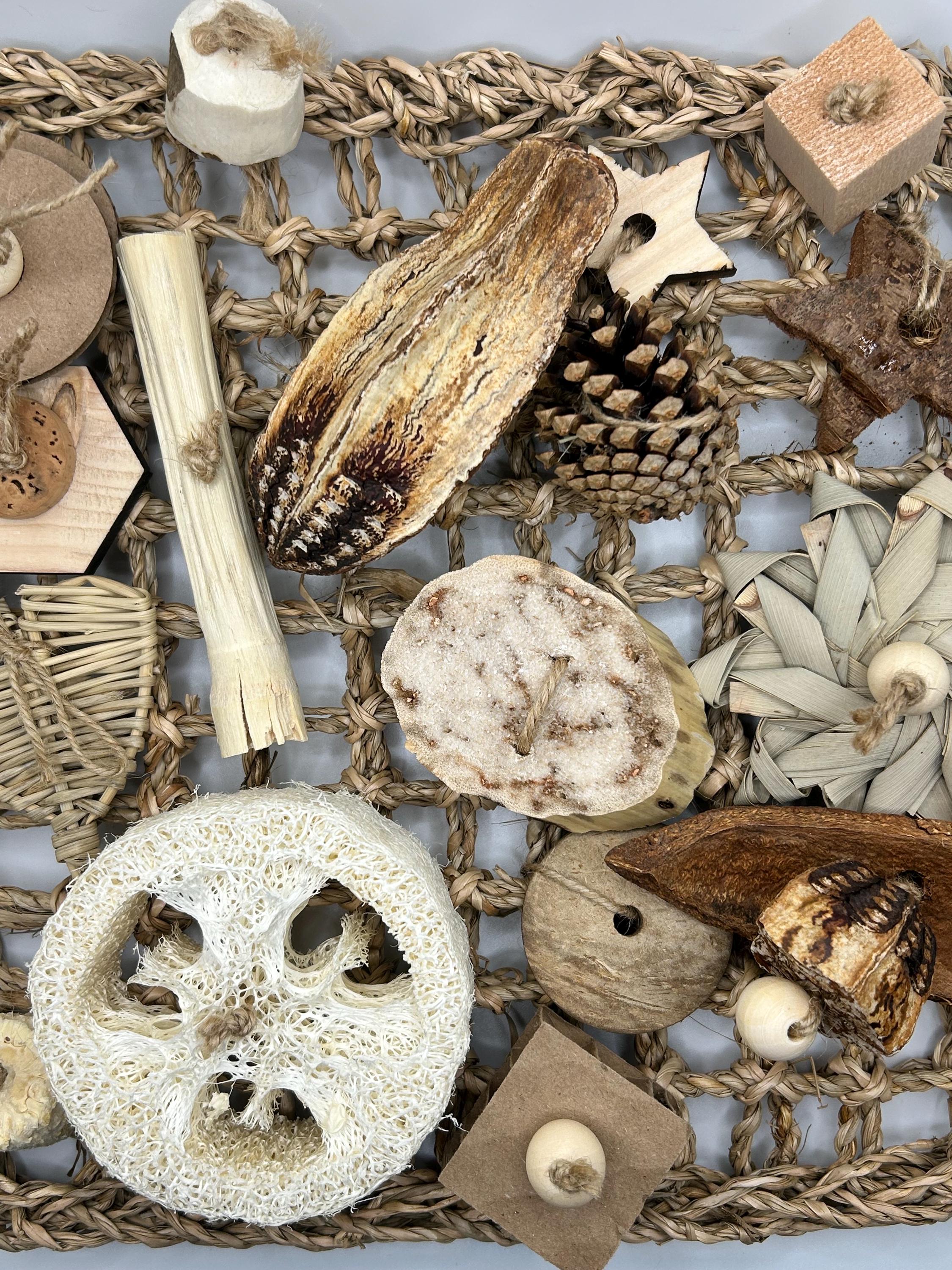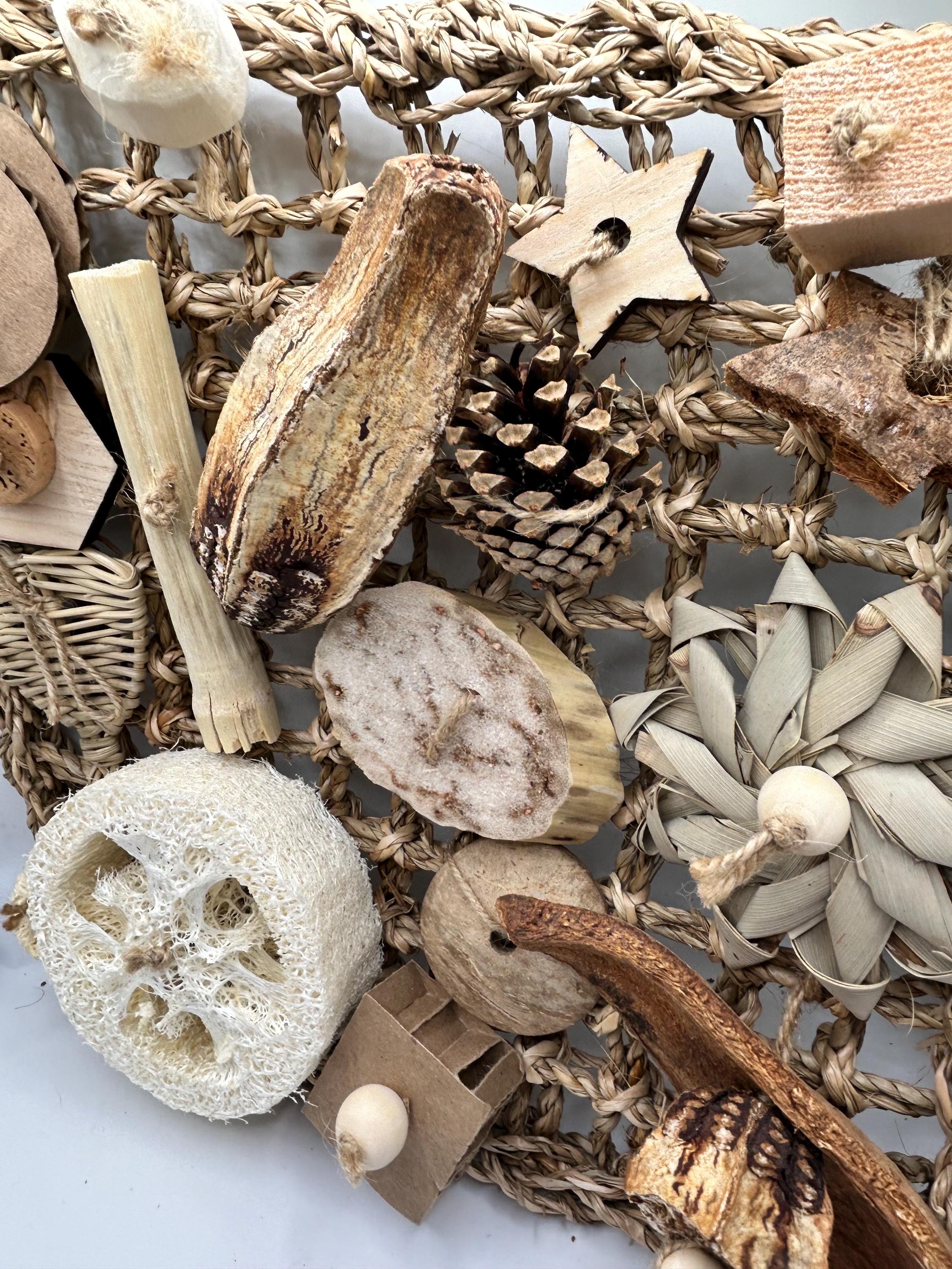 This is a natural way to cure your pet rats boredom. Featuring several different items for rats to chew, shred, and play with. A must have for rats!